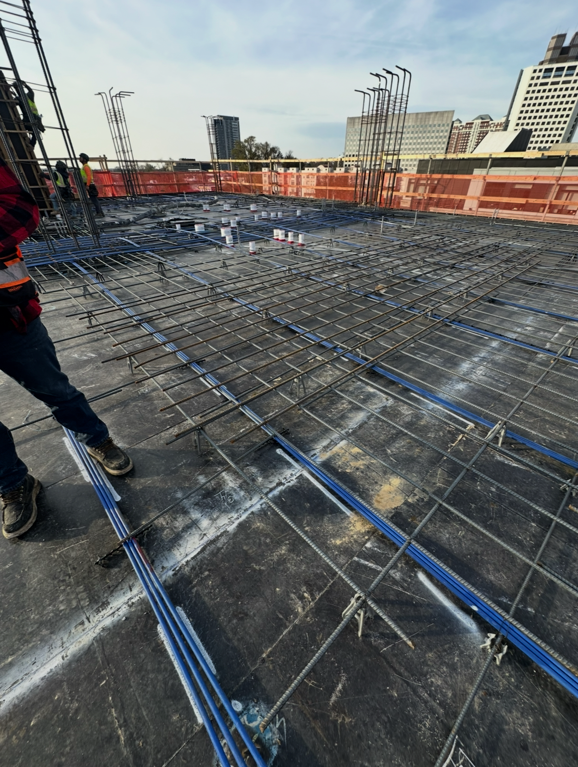 We place and finish concrete on metal decks and other elevated systems, focusing on achieving a level, uniform slab across large areas. Our work ensures the concrete bonds properly to the deck, cures evenly, and creates a reliable floor structure.